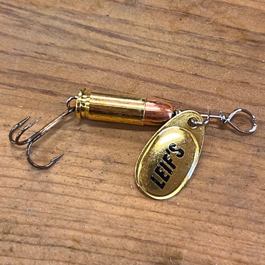 Leif's .25 ACP Bullet Lure is made from real .25 ACP ammo! Featuring a 50 grain FMJ bullet, shiny brass case, and a #1 French spinner blade, this bullet spinner is perfect freshwater lakes, ponds, and streams and will attract a variety of fish and sizes. The .25 ACP Bullet Lure has been my Go-To Bullet Lure for over 6 years!