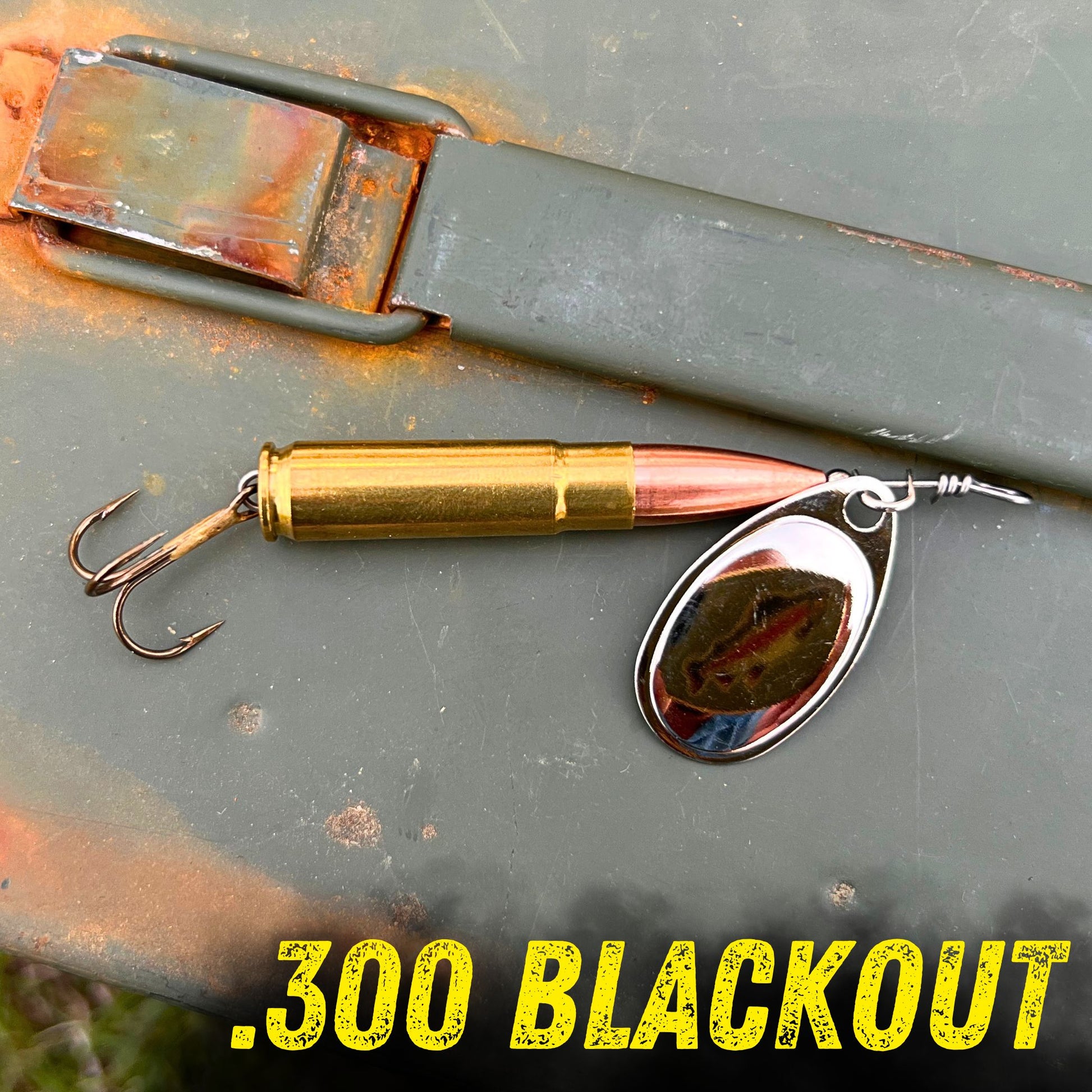 Leif's .300 Blackout Bullet Lure is made from real .300 Blackout ammo! Featuring a 125 grain solid copper bullet, shiny brass case, and a #3 French spinner blade, this bullet spinner is perfect for freshwater & saltwater and will attract a variety of fish and sizes. The .300 Blackout Bullet Lure is 100% LEAD FREE!