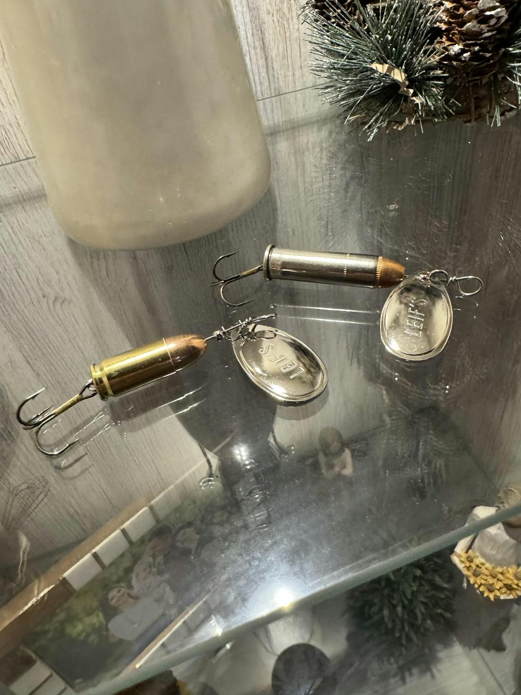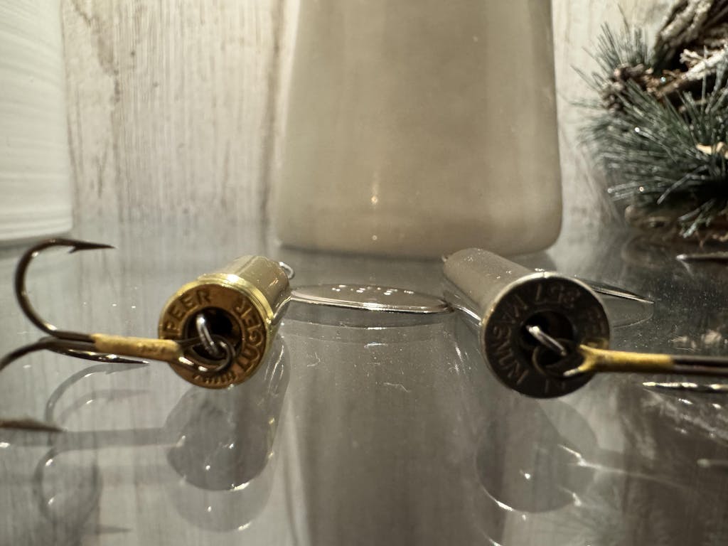 Leif's .357 Magnum Silver Bullet Lure is made from real .357 Magnum ammo! Featuring a 125gr FMJ bullet, shiny nickel case, and a #3 silver French spinner blade, this bullet spinner won't fail to attract fish in clear water where bright shiny lures do well. This is a limited Bullet Lure and is only available when I can get my hands on this rare and bright brass!